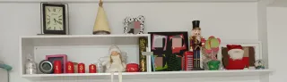 Estantería de dos niveles con un diseño moderno y perforado. - Estructura metálica. - Color blanco. - Diseño con perforaciones decorativas. Precio por unidad 5€. Dos disponibles.