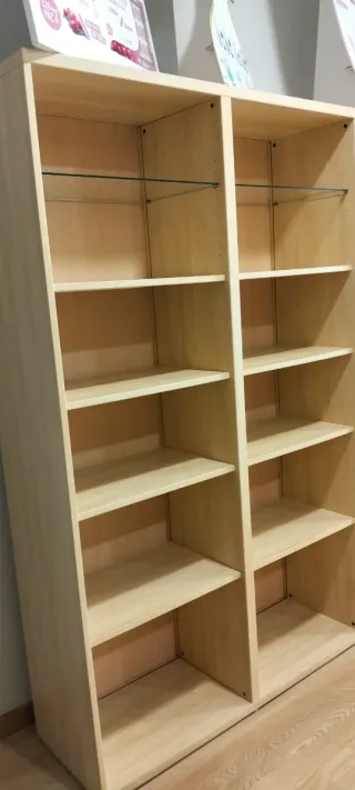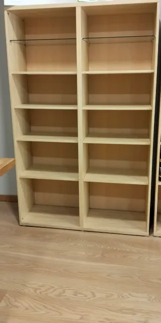 Conjunto de estanterías de madera, perfectas para organizar tus libros o decoraciones. - Diseño de madera en tonos beige. - Estructura robusta y duradera. - El conjunto consta de 3 estanterías estrechas y 3 más anchas. - Las estrechas miden 40 cm de ancho y las más anchas miden 80 de ancho. - Se pueden comprar juntas o por separado. - El precio de la estrecha es 30€ cada una. - El precio de las ancha es de 50€ cada una. Están desmontadas y embaladas, listas para recoger, tal cual se ve en las fotos.