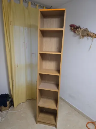 Estantería alta de madera en color marrón, ideal para organizar libros o decoración. Se vende por mudanza. - Estructura de madera. - Color marrón.