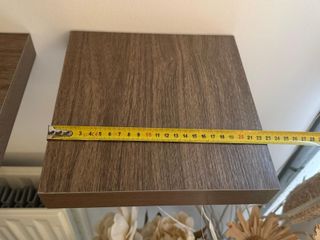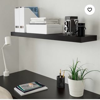 Estantería flotante de madera de la marca Ikea. Diseño moderno y minimalista. - Acabado en tono marrón oscuro. - Ideal para cualquier estancia del hogar. Son cuatro estanterias de tres medidas distintas, una de 60cm, 80cm y dos de 23cm con sus fijaciones de pared. El precio es de las cuatro, se venden tambien de forma individual a 3,5€ las pequeñas la unidad y las grandes a 5€.