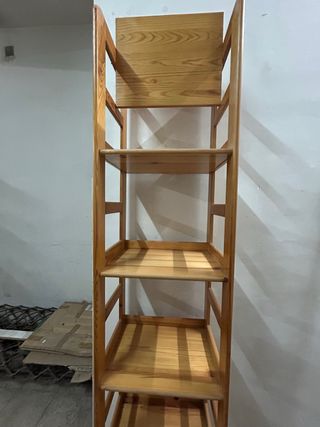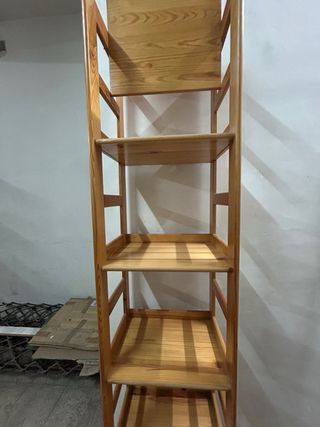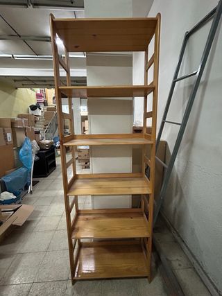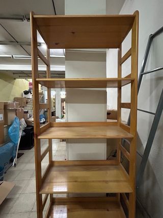 Estantería de madera con cinco baldas, ideal para organizar tus libros o decoraciones. Se encuentra en buen estado. - Diseño de madera natural. - Cinco niveles de almacenamiento.