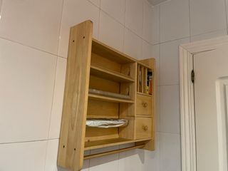 Estantería modular de diseño moderno con acabado en madera. Se vende montada, pero está sin estrenar. Nunca se ha llegado a colgar. Precio de compra: 110€ Materia principal: Paneles de partículas Peso: 8 000 gr Anchura: 19,5 cm Largo: 100 cm Altura: 53 cm