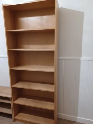 Se venden dos estanterías de madera con las siguientes medidas. - Alto: 160 cm - Ancho: 80 cm - Profundidad: 23 cm