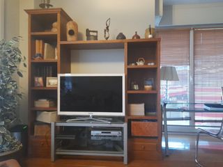 Estantería de madera maciza de castaño color madera rústico, hecha en fabrica de muebles de Ezcaray Tambien hay posibilidad de coger a juego mesa baja de centro. Posibilidad de recogida en domicilio. en su día el mueble de madera costó 810 euros más iva se adjunta presupuesto. El mueble de tv con la tv no está incluido.