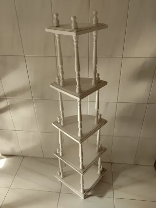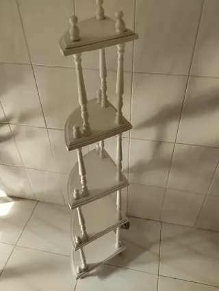 Elegante esquinera de madera con un diseño clásico y funcional. - Estructura de madera. - Acabado en color blanco. - Diseño de cuatro niveles.