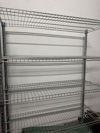 Conjunto de estanterías metálicas para organizar tu espacio. Usadas pero perfectamente utiles - Estructura robusta de metal. - Diseño de rejilla abierto. - Acabado plateado.