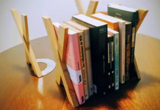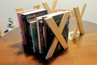 Conjunto de 4 sujetalibros de madera con un diseño moderno y minimalista. Perfectos para organizar tus libros en cualquier estantería. - Material: Madera - Diseño: X - Color: Madera natural