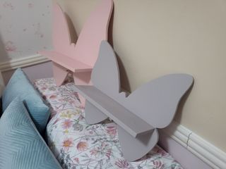 Conjunto de 2 estanterías de madera rosa y gris clarito, para decorar habitación, de diferentes tamaños. Rosa 50x45x10cm Gris 35x33x10cm