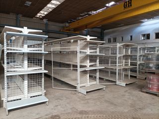 Estantería metálica de gran capacidad, ideal para organizar espacios. - Estructura robusta de metal. - Paneles de rejilla metálica. - Diseño modular para adaptarse a tus necesidades. 400 módulos de estanterías cada modulo está compuesto por : 4 baldas 2 pie Precio 100 euros cada MODULO