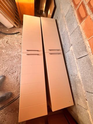 Conjunto de muebles de pared con un diseño moderno y elegante. (Para baño,cocina...) Medidas: 176x35x37 - Acabado en tonos beige y marrón. - Combinación de materiales de madera y metal.