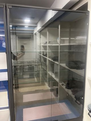 Vitrina de cristal y metal gris