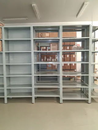 Estanterías metálicas de almacén en buen estado. - Fabricadas en metal resistente. - Color gris y plateado. -Tengo hasta 15 ó 20 m. lineales