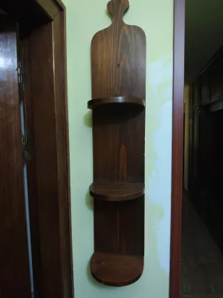 Estantería de madera con tres niveles, ideal para organizar tus objetos. - Medidas: 84 cm de largo, 40 cm de profundidad y 24 cm de alto. - Diseño de tres baldas. - Precio: 20€