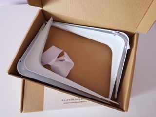 Conjunto de ocho soportes para estanterías o baldas. Pack de 2 cajas con 4 soportes cada uno, medidas de 15,2x20,3cm - Diseño en L. - Agujeros para fijación. - Acabado liso.