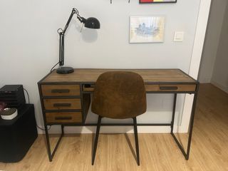 Escritorio con un diseño industrial y moderno de Hannun, perfecto para cualquier espacio. 150€ Estantería de madera de Hannun Barcelona, regulable. Color roble. 60€ Cabecero de madera de Hannun Barcelona ideal para cama de 150/160 (mide 165 cm.) 125€ Las tres cosas, 300€