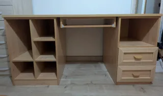 Mesa de escritorio funcional con amplias opciones de almacenamiento. - Compartimentos de estantería abiertos. - Dos cajones con tiradores. - Bandeja extraíble para teclado. Recogida en Linares