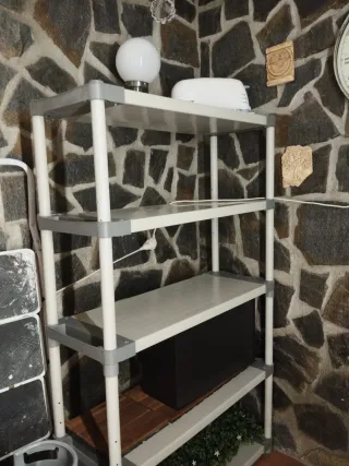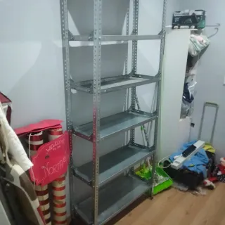 30 euros cada módulo de estanterías metálicas de color gris, ideales para organizar tu espacio. - Estructura robusta de metal. - Diseño modular para adaptarse a tus necesidades.