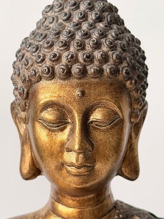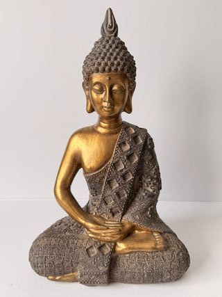 Elegante figura de Buda en acabado dorado con detalles en gris envejecido. Una pieza decorativa muy especial que transmite calma y armonía. Ideal para: • Decoración de salón o dormitorio • Espacio de yoga o meditación • Mesa auxiliar, estantería o altar espiritual • Regalo original y significativo Perfecto para quienes buscan un toque espiritual, zen y sofisticado en su hogar.
