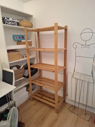 Mueble de madera con múltiples estantes, ideal para organizar y almacenar. - Diseño versátil. - Acabado en tono madera natural. Vendo mueble expositor con estanterias . Altura, 2 metros DISPONIBLE 3 DÍAS !!