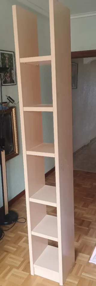 Estantería alta y estrecha, muy robusta y perfecta para organizar libros o decoraciones. Su diseño sencillo se adapta a cualquier espacio. Se puede desmontar. - Estructura de madera. - Color beige neutro. - Múltiples baldas para almacenamiento.