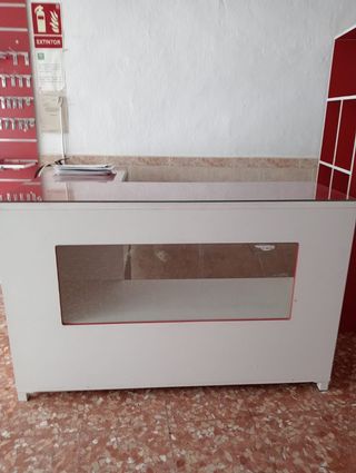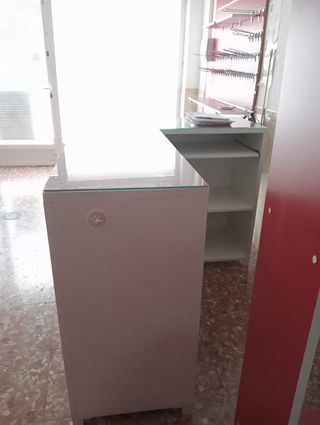 Preciosa esquina de mostrador con estanterías a juego. Ideal para negocio. - Perfecto estado. - Diseño moderno y funcional. - Incluye mostrador y dos estanterías. - Precio mostrador 200 € - Precio estanterías 100 € las 2