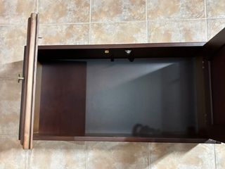 Preciosa estantería mostrador, ideal para negocio o hogar. Se encuentra en buen estado, aunque presenta algunas señales de uso. - Estructura de madera y cristal. - Tres estantes de cristal. - Un estante inferior de madera. - Perfecta para exhibir productos.
