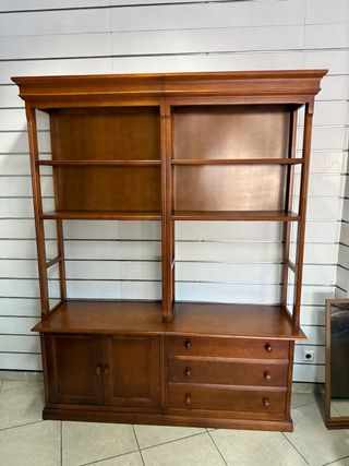 Estanterías de madera con un diseño clásico y elegante. - Estructura robusta de madera. - Múltiples baldas para almacenamiento. - Base con compartimentos cerrados y cajones.Estantería provenzal Largo 165 cm Fondo 47 cm Alto 215 cm Precio 240€