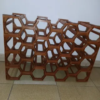 - Son 4 módulos encajables para 7 botellas cada uno en horizontal (4 en vertical), en total tiene capacidad para 28 botellas. - Apilable en distintas posiciones para adaptarse a cualquier espacio: de una altura, dos, tres, o los cuatro módulos juntos. - De plástico resistente. - Estructura hexagonal. - Color marrón. - Largo: 64,5 cm. - Alto de los 4 módulos juntos: 45 cm. - Alto de cada módulo: 11,25 cm.
