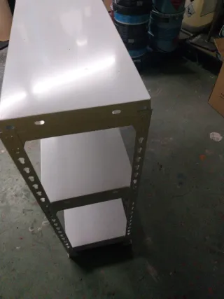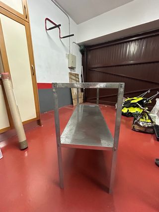 Estantería metálica de dos niveles, estructura robusta. Fácil montaje. Ideal para organizar espacios y como superficie de trabajo. Se entrega desmontada, con todos los tornillos. Para entrega montada preguntar.