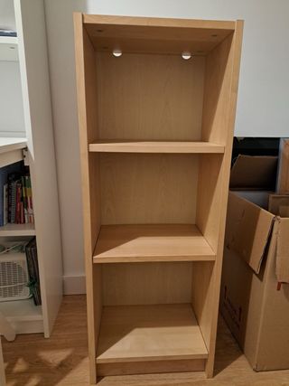 Estanteria madera moderna 3 niveles Con algo de polvo, se entrega limpia. Sin arañazos visibles, en perfectas condiciones.