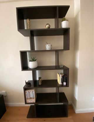 Vendo estantería de madera en color marrón chocolate con un diseño moderno y asimétrico, ideal para añadir estilo y funcionalidad a cualquier espacio. ❇️Perfecta para el salón, dormitorio o estudio. Características: ✔️Material: madera de alta calidad en color marrón chocolate. ✔️Diseño asimétrico, moderno y único. Amplio espacio de almacenamiento para libros, decoraciones y más. ✔️En excelentes condiciones, ideal para quienes buscan una pieza decorativa y práctica. 🟩Medidas: Ancho: 80 cm Altura: 192,5 cm Profundidad: 25 cm ⸻ Ha estado anclada en la pared.