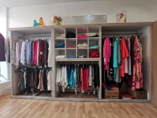 Estanterías de madera robustas y desmontables con tornillos, ideales para organizar tu garaje o trastero. Su diseño permite almacenar diversos objetos de forma ordenada. Cada estanteria mide: 77x174x53 cm - Construcción sólida en madera. - Múltiples baldas para almacenamiento. - Estructura estable reforzada con barras de acero. - tiene capacidad de atarse a la pared. -Se puede desmontar dejando la longitud máxima en 1,74 m.