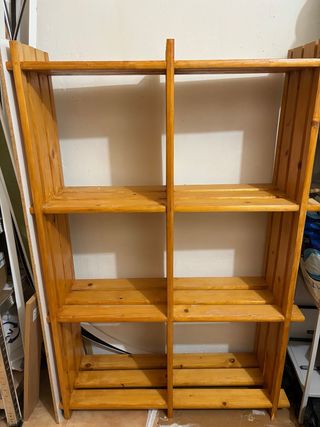 Estantería de madera maciza, ideal para organizar tus pertenencias. - Diseño robusto y duradero. - Acabado natural de la madera. mide dos 23 × 80 × 23 se puede desmontar todas las piezas son enteras. Las tablas son de una sola pieza no pegadas de trozos tiene seis pisos no envíos