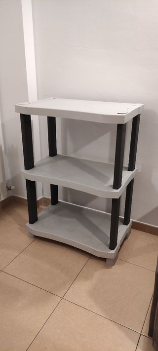 Dos estanterías blancas de plástico en buen estado. Son perfectas para organizar cualquier espacio. - Medidas: 37x23x101 cm - Ideales para baño, cocina u oficina. - Se venden juntas o por separado. - 9€ cada una.
