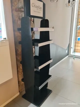 Estantería de tienda con varios niveles. - Estructura principal en negro. - Estantes en negro. - Altura total: 170cm. - Profundidad de estante: 40cm. - Ancho de estante: 47cm.
