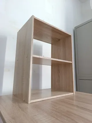 Estantería de madera minimalista y funcional. Sus tonos neutros la hacen fácil de combinar. - Dos estantes abiertos. - Acabado en madera clara.