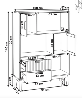 Mueble de almacenamiento con un diseño encantador. - Estructura principal de madera. - Parte inferior con dos puertas. - Acabado en blanco con pomos de diseño en azul Medidas 183x80x40 Espacio entre estanterias 30cm Altura puertas 58cm *NO INCLUYE ACCESORIOS, SOLO EL MUEBLE