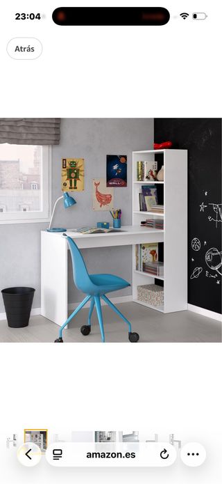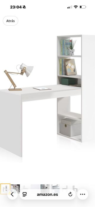 Práctico escritorio con estantería integrada, ideal para organizar tus libros y objetos personales. - Diseño moderno y funcional. - Acabado en color blanco. - Fabricado en madera. Tengo las fotos reales Lo pague en 75€