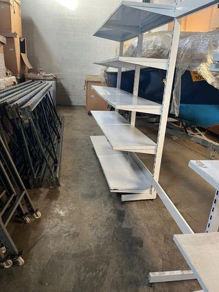 Estanterías de tienda en buen estado, ideales para organizar cualquier espacio. - Son unidades de estanterías metálicas blancas. - Están en buen estado - Perfectas para almacenar productos o artículos en un comercio o almacén.