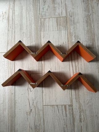 Bonitas estanterías de madera, en color naranja y marrón, prácticamente nuevas. Ideales para decorar cualquier espacio. - Se venden dos unidades. - Diseño moderno y original. - Fácil instalación.