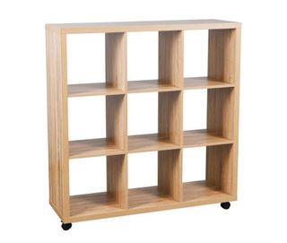 Estantería modular de diseño moderno, perfecta para organizar tus espacios. Tiene 9 huecos, y michas posibilidades. Además, dispongo de dos, y tienen ruedas. Si compras una, a 50 euros. Si compras las dos, a 80 euros. - Estructura de madera con acabado en tonos beige y marrón. - Nueve cubos de almacenamiento. - Incluye ruedas para facilitar su movilidad.