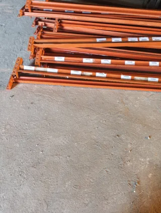 Se venden baldas metálicas para estanterías industriales. Son de color naranja y están fabricadas en metal. - Ideales para almacenamiento. - Resistentes y duraderas.