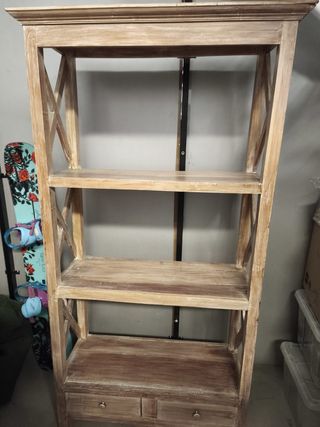 Bonita estantería de madera, ideal para organizar cualquier espacio. Tiene un estilo rústico y elegante. - Dos cajones en la parte inferior. - Tres baldas amplias. Precio por unidad