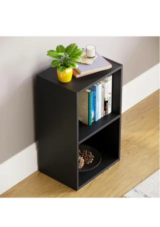 Estantería Oxford de dos niveles en color negro. Ideal para organizar libros o elementos decorativos. - Diseño moderno y funcional. - Dos compartimentos amplios. Esta estantería es un complemento perfecto para cualquier habitación, llenando el espacio y añadiendo un estilo moderno y sencillo. Esta estantería está hecha de dos cubos, lo que le da dos estantes para usar para libros o cualquier otro accesorio o decoración. Precio Outlet Fusion Store 19,99€