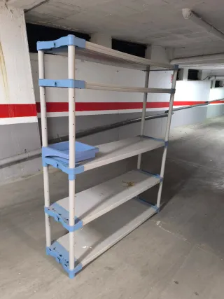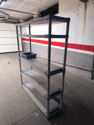 Estantería de resina con 5 niveles. - Estructura de plástico resistente. - Color azul y blanco.