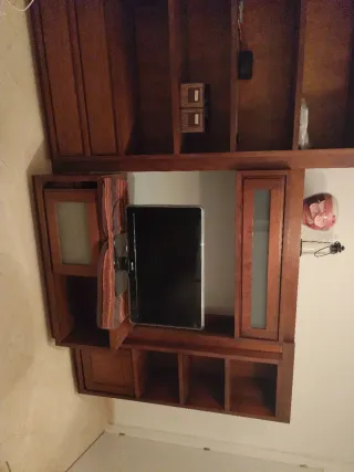 Mueble TV y estanterías de madera