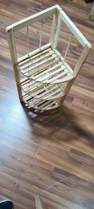 Estantería de esquina plegable, ideal para optimizar espacios. Su diseño de madera le da un toque natural. - Estructura de madera. - Diseño de esquina. - Plegable para fácil almacenamiento.