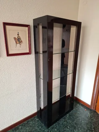 Estanterías madera lacadas en negro con cristal