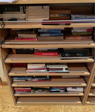 Estantería grande de buena calidad. Si la desmontas y te la llevas la dejo en 50€ si no en 80€. La parte de abajo está un poco estropeada pero se puede sustituir o quitar. Es de contrachapado supongo.