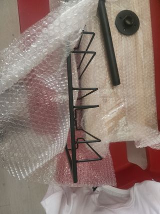 Estantería metálica negra para copas, ideal para organizar tu colección. Se encuentra en perfecto estado. - Estructura de metal resistente. - Diseño elegante y minimalista. - Perfecta para colocar en cualquier espacio.